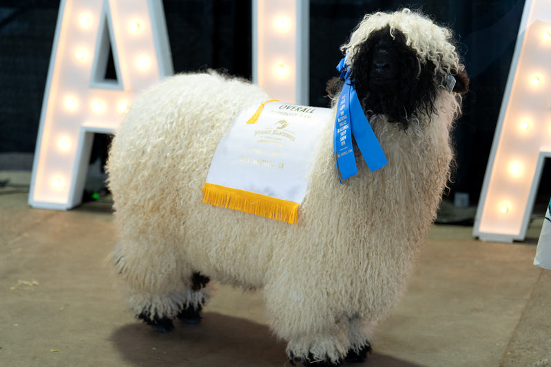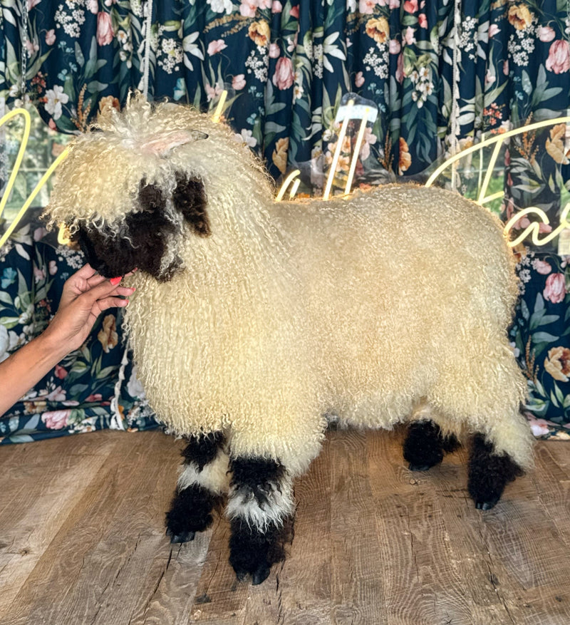 Son of Black Magic, Mr. Big will carry recessive Spitti genes. An exquisite Valais Blacknose ram lamb with a distinguished pedigree, boasting strong genetic lines and hybrid vigor.